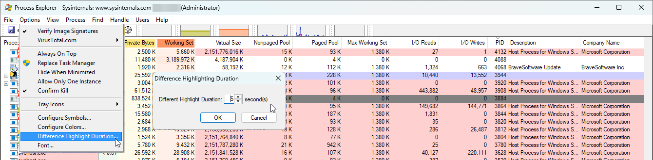 Let’s say the highlighting does show you a process, but it’s still hard to pin down. Here are two more ProcExp tricks: